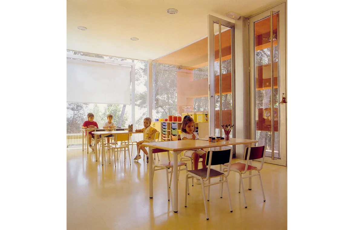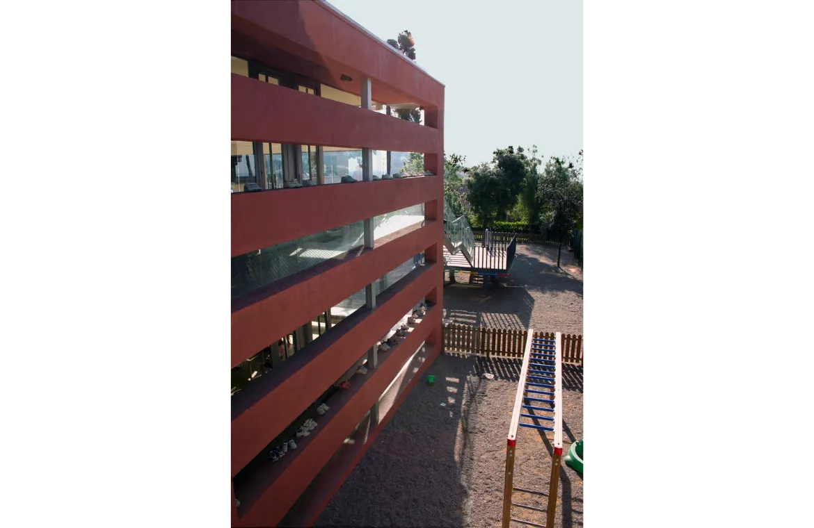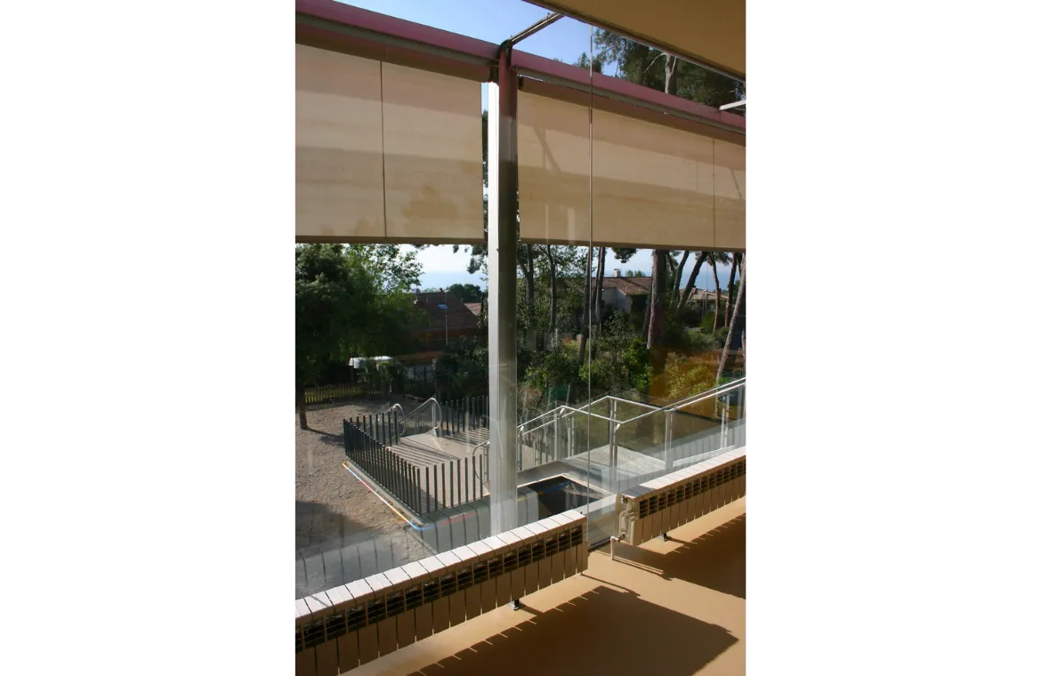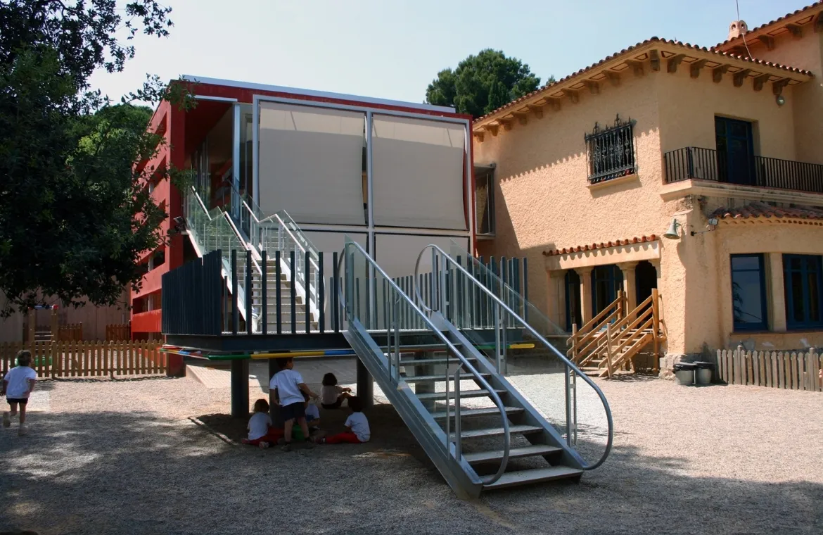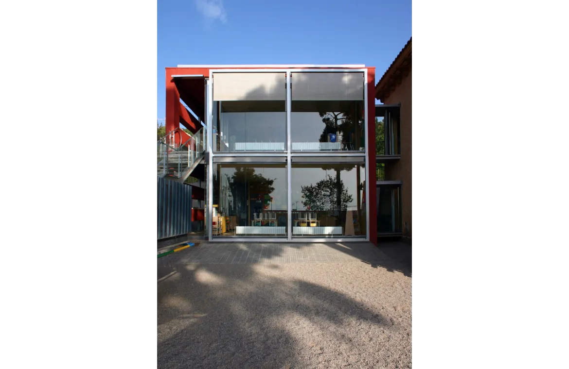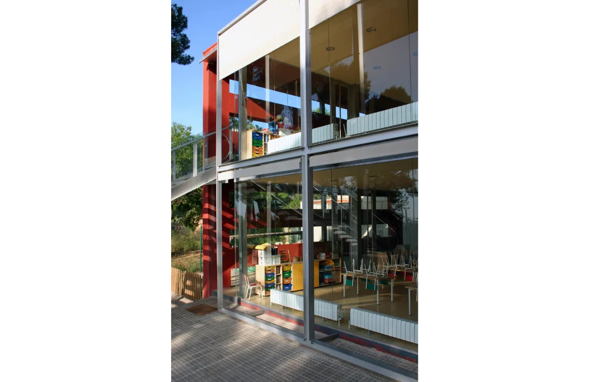 Havent finalitzat la reforma interior de l’edifici existent el 1998, es projecta l’ampliació per impartir dues linies d’educació infantil. L’ampliació es planteja com un pavelló al jardí, amb una aula per planta i connectat a l’edifici, amb passeres vidriades. Una escala metàl.lica permet la sortida desde la planta primera al jardí.