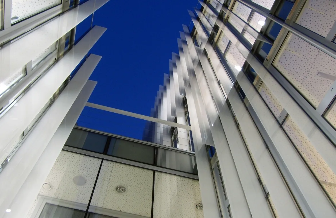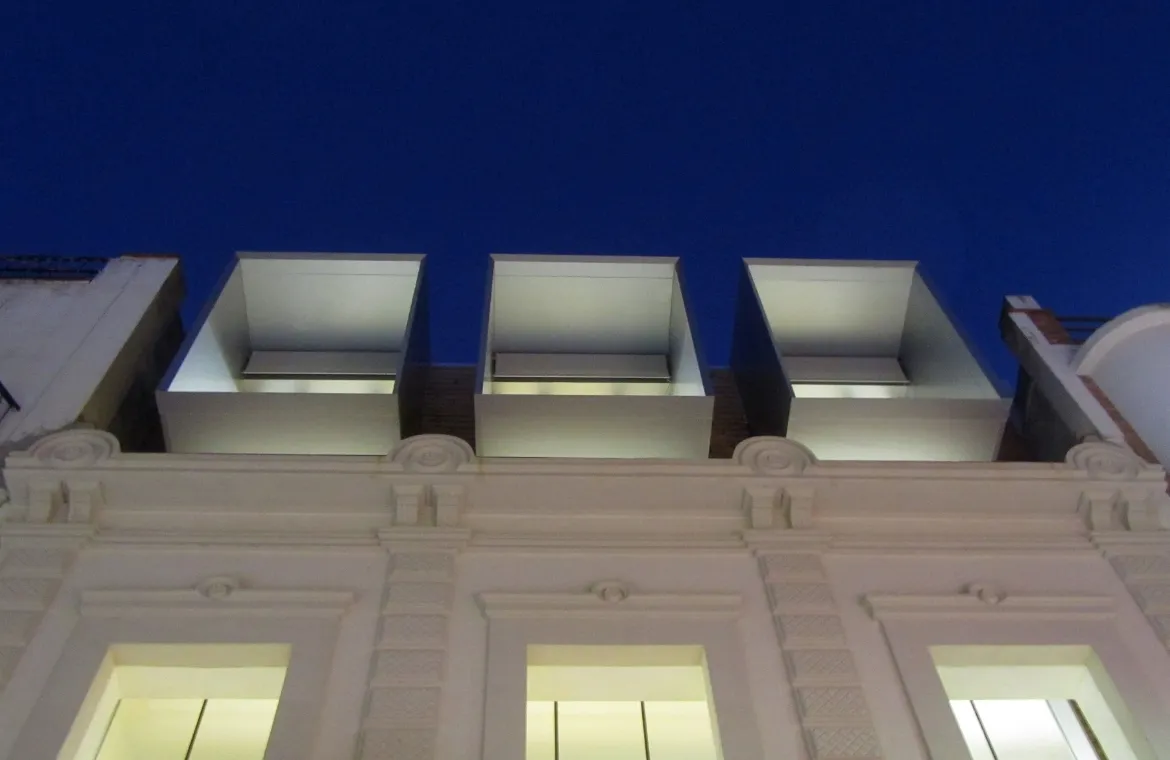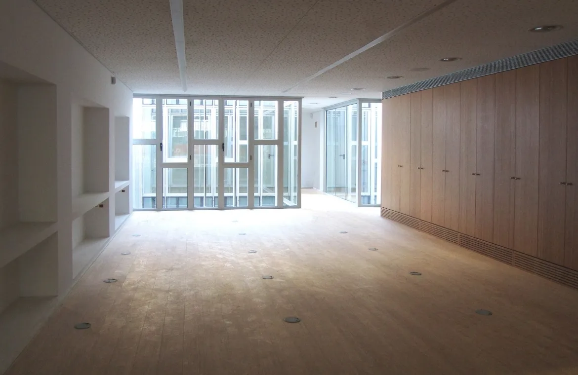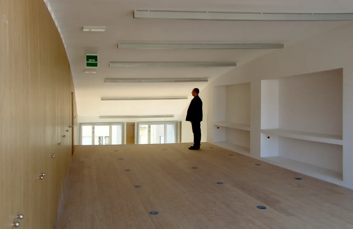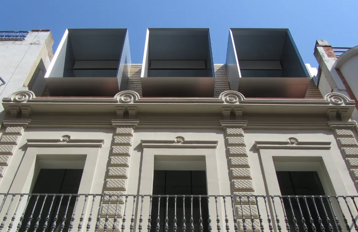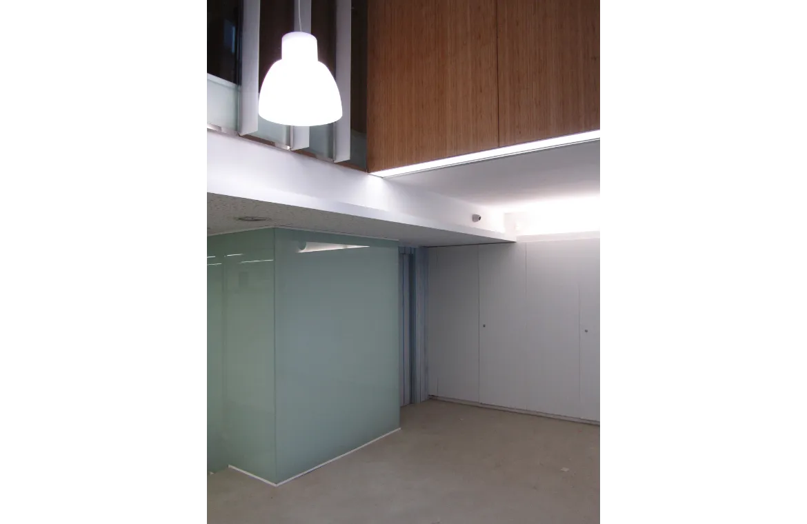 La decisió de conservar la façana permet integrar l’edifici dins del casc antic, mantenint la imatge del carrer i alhora, conferir-li singularitat i caràcter. L’edifici es composa de 2 cossos, el principal de 5 plantes reculat de la façana original, amb una façana lleugera i transparent contrastant amb la de pedra i estuc existent i permetent conciliar el nou edifici a les alçades i obertures de la façana antiga, actuant aquesta com la pell exterior de protecció solar i dissipació tèrmica d’una façana ventilada. La façanes interiors són vidriades amb lamel·les verticals de vidre traslluït per protecció i difusió de la radiació solar. La coberta es corba per aconseguir un espai sota-coberta de qualitat A la part posterior hi ha el cos baix, separat per un pati del principal per il·luminar i ventilar les plantes inferiors. El programa s’organitza de manera similar en totes les plantes. A partir d’un cos d’armaris longitudinal es diferencia l’espai de treball del nucli de comunicació i serveis.