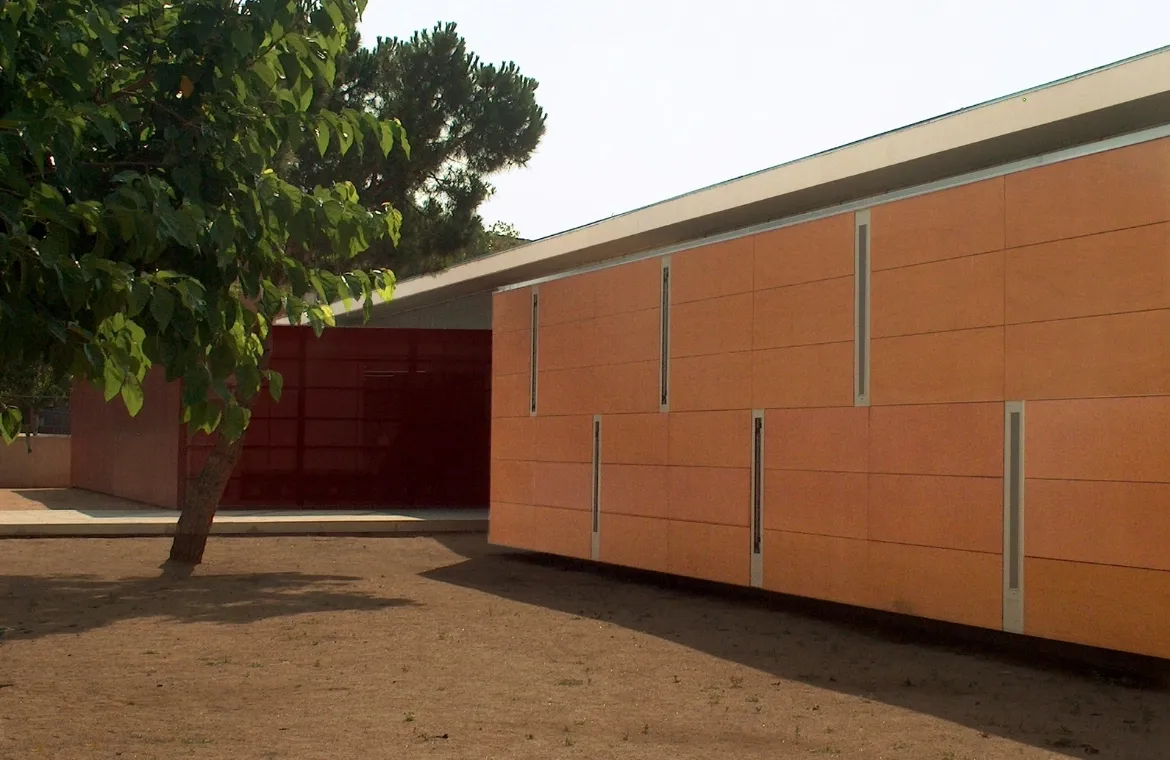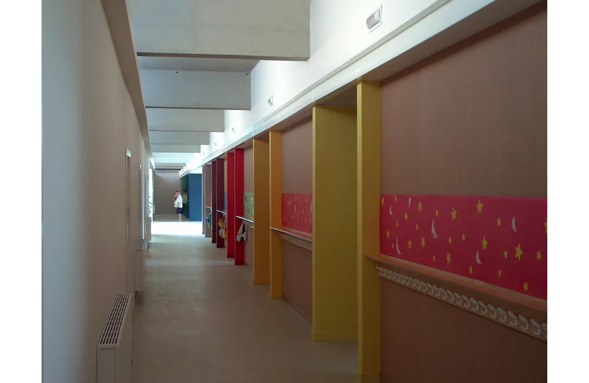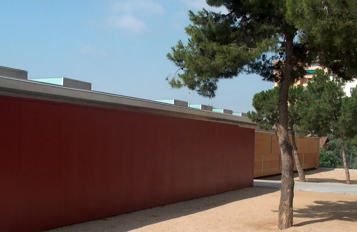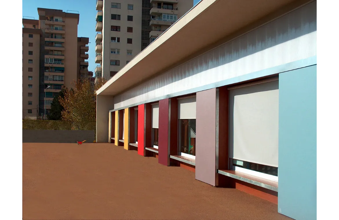 La voluntat ha sigut tractar l’edifici com un pavelló envoltat d’arbrat. Es configura en un bloc lineal, amb les aules i patis orientats a sud. El volum de les aules és més alt, darrera sobresurten els volums de serveis, més baixos, entre ambdòs es produeixen entrades de llum al passadís. A la coberta es repeteixen unes caixes de vidre blanc, patis-lluernaris que donen il.luminació als serveis interiors de les aules i permeten la ventilació creuada d’aquestes.