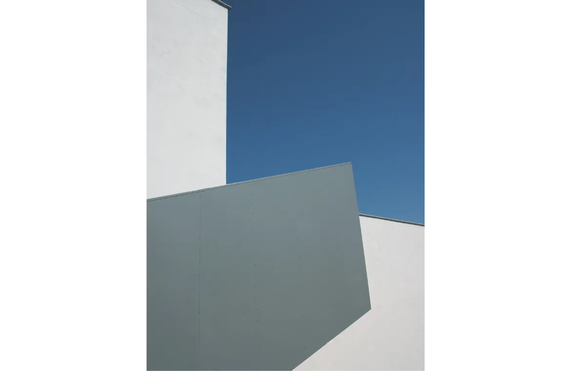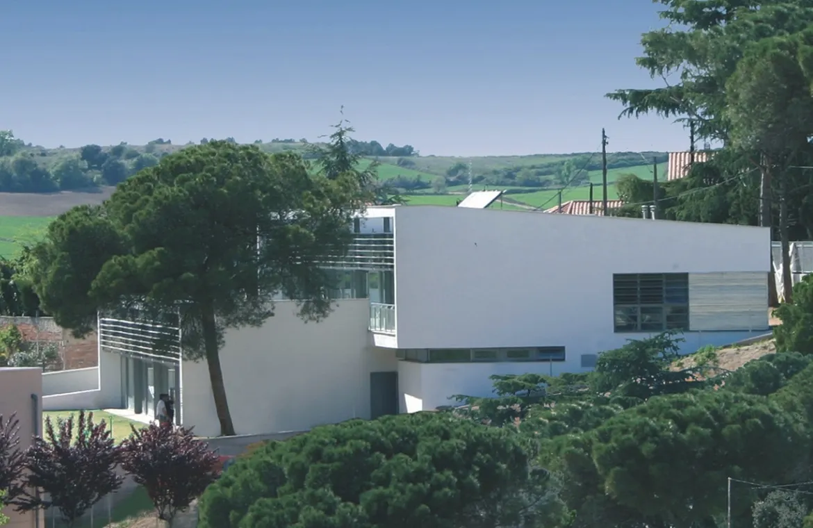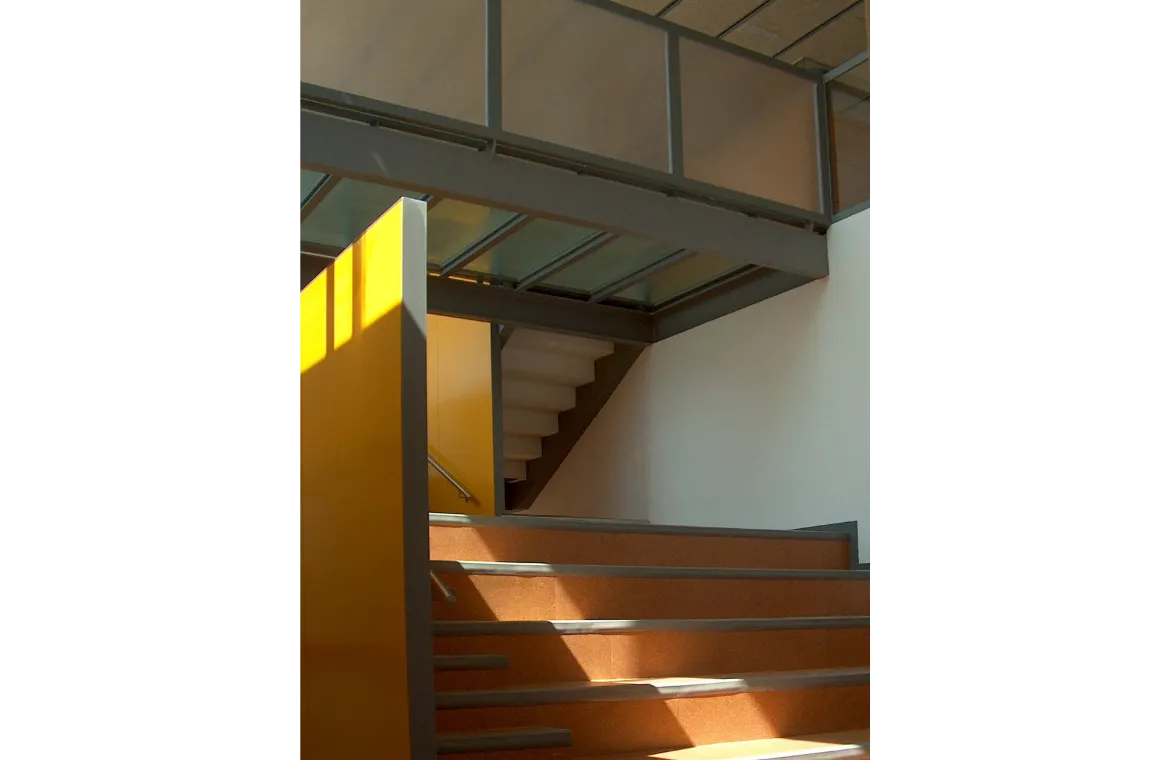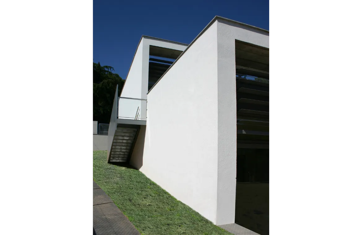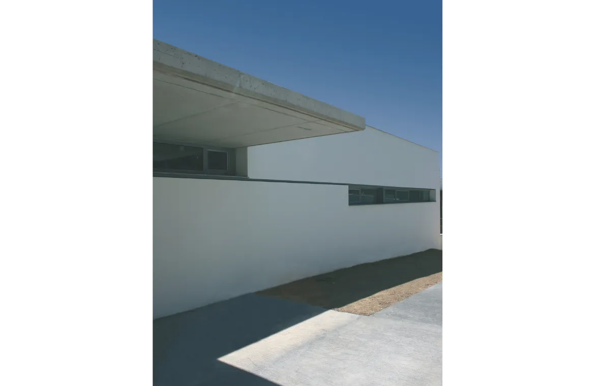Edifici esglaonat de dues plantes per adaptar-se al fort pendent de la parcel•la, aconseguint d’aquesta manera, una terrassa a la planta d’accés per a pati de jocs. Totes les aules estan ben orientades, i amb accés directe als patis. El nucli de comunicacions verticals es converteix també, en zona de jocs interior, amb grades i tobogans.