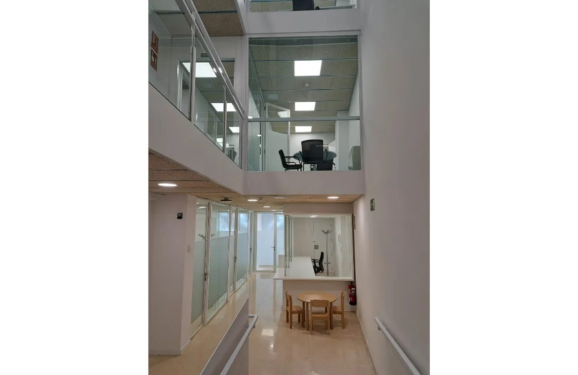 Reforma interior de l’edifici per a redistribuir-lo i així poder atendre a les noves necessitats de programa funcional. Atesa la intervenció, també cal donar compliment a les normatives vigents, sobretot pel que fa a la prevenció d’incendis. El gruix de la intervenció consisteix en col·locar en la planta baixa i la primera planta sales/despatxos per a entrevistes amb famílies, i a la resta de l’edifici sales més grans de treball i sales de reunions. L’actuació més important, és per a donar compliment a la normativa de prevenció d’incendis: s’ha tancat l’escala per a convertir-la en protegida.