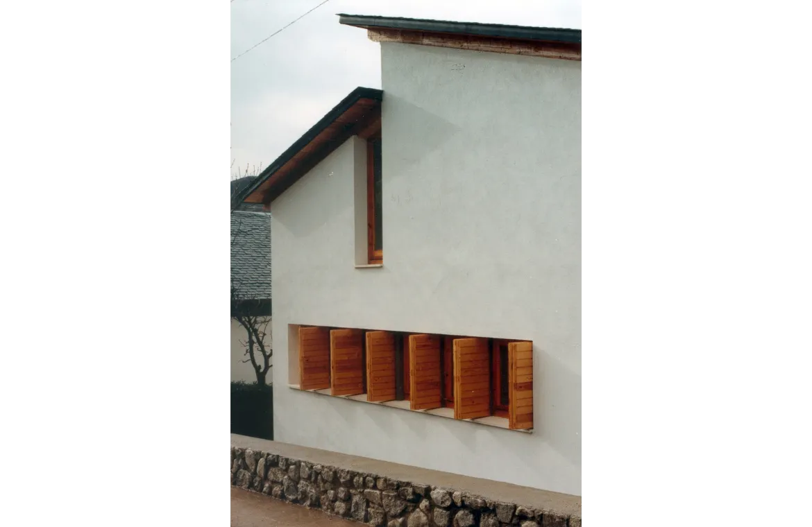 Se substitueix la coberta, molt malmesa, canviant el sentit de les aigües i aixecant-la per aprofitar la meitat de la planta. Són dos plans de fusta amb acabat de pissarra i ràfecs sense cabirons que creen una tarja de llum entre les dues pendents que il.lumina l’interior, i especialment l’escala. La planta baixa es reforma i redistribueix afegint-li un garatge.