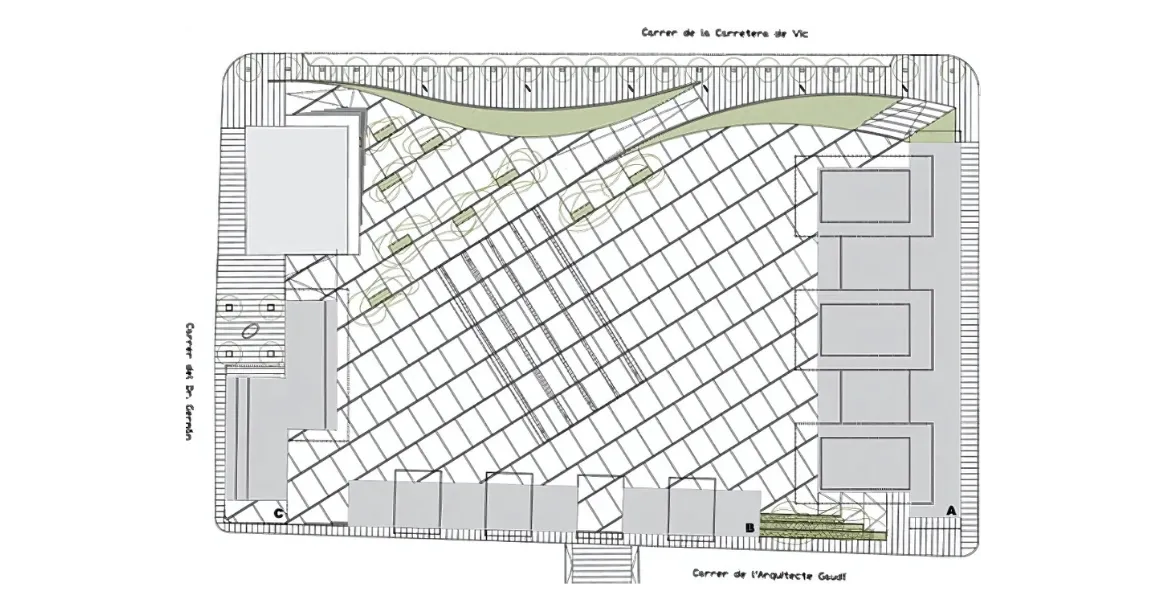 Transformació del teixit residencial per crear una plaça a l’entorn de l’edifici catalogat del cobert de la màquina de Batre.