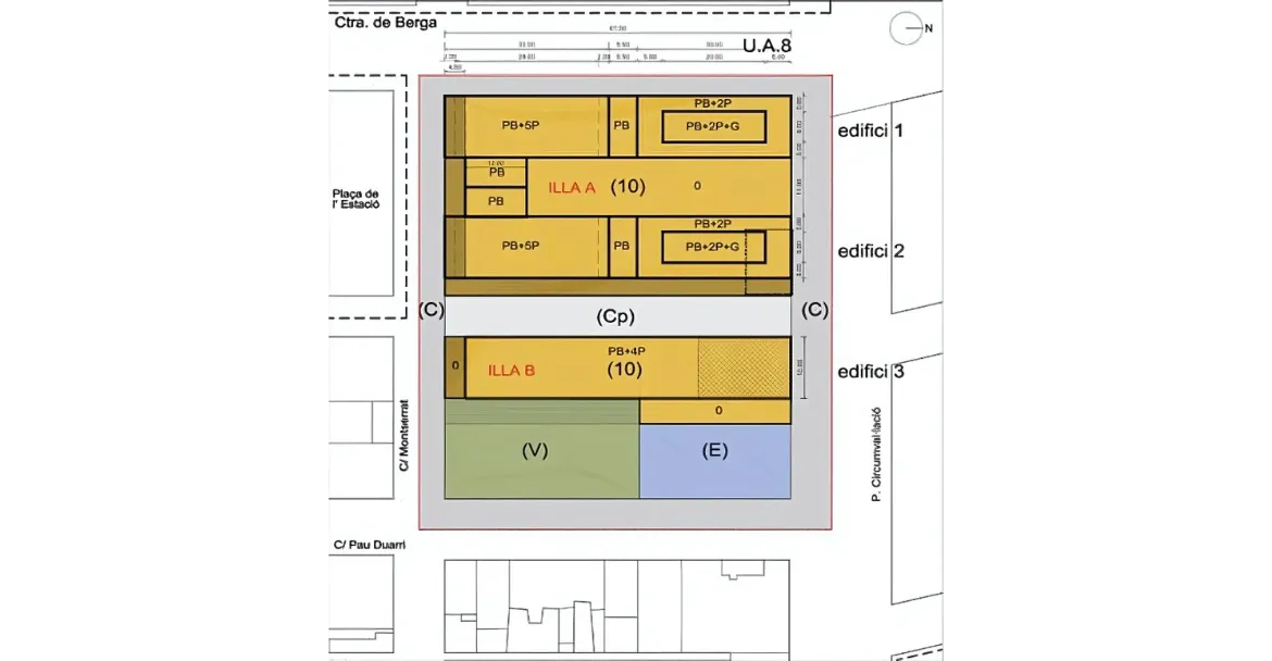 Definició de la nova ordenació residencial davant la plaça de l’Estació, incloent un nou equipament i plaça pública.